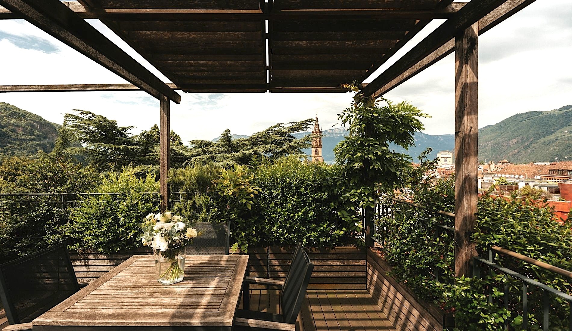 Dachterrasse mit Ausblick auf die Dächer von Bozen